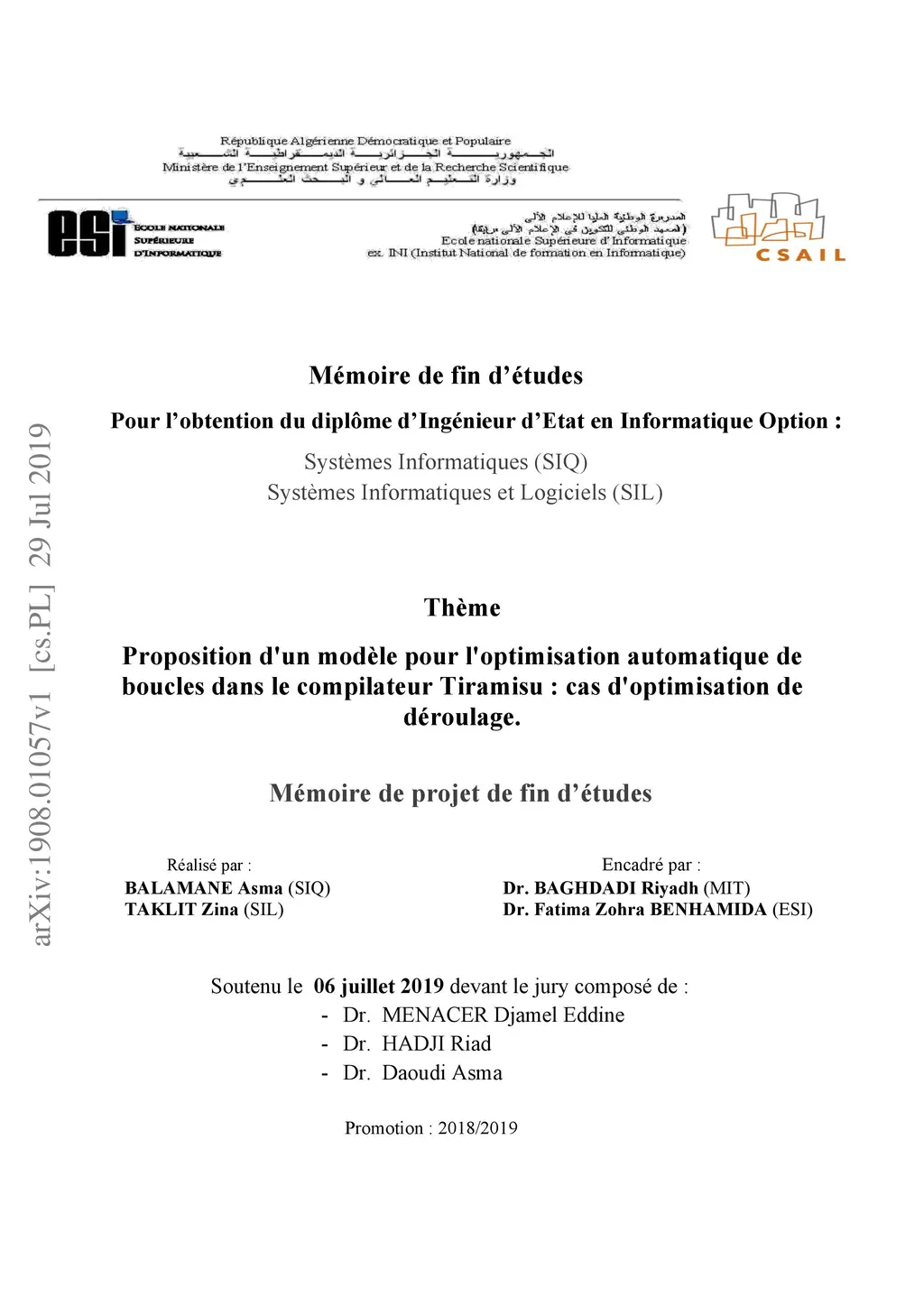 dans le compilateur Tiramisu : cas dóptimisation de déroulage