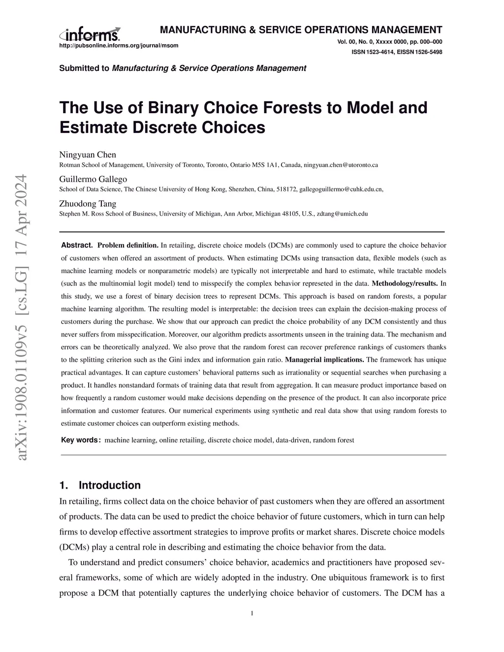 The Use of Binary Choice Forests to Model and Estimate Discrete Choices