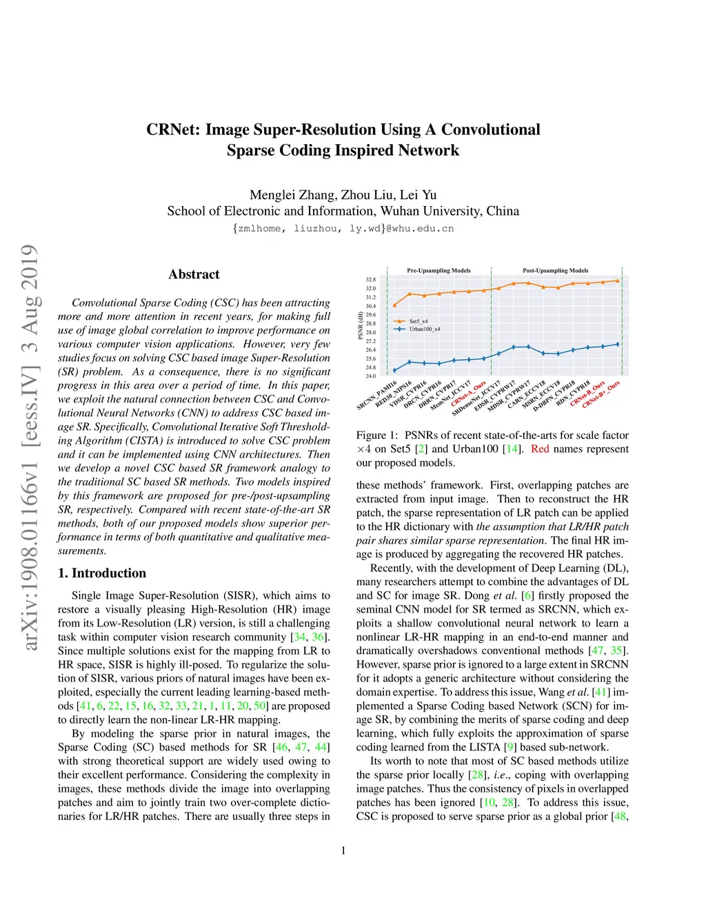 CRNet: Image Super-Resolution Using A Convolutional Sparse Coding