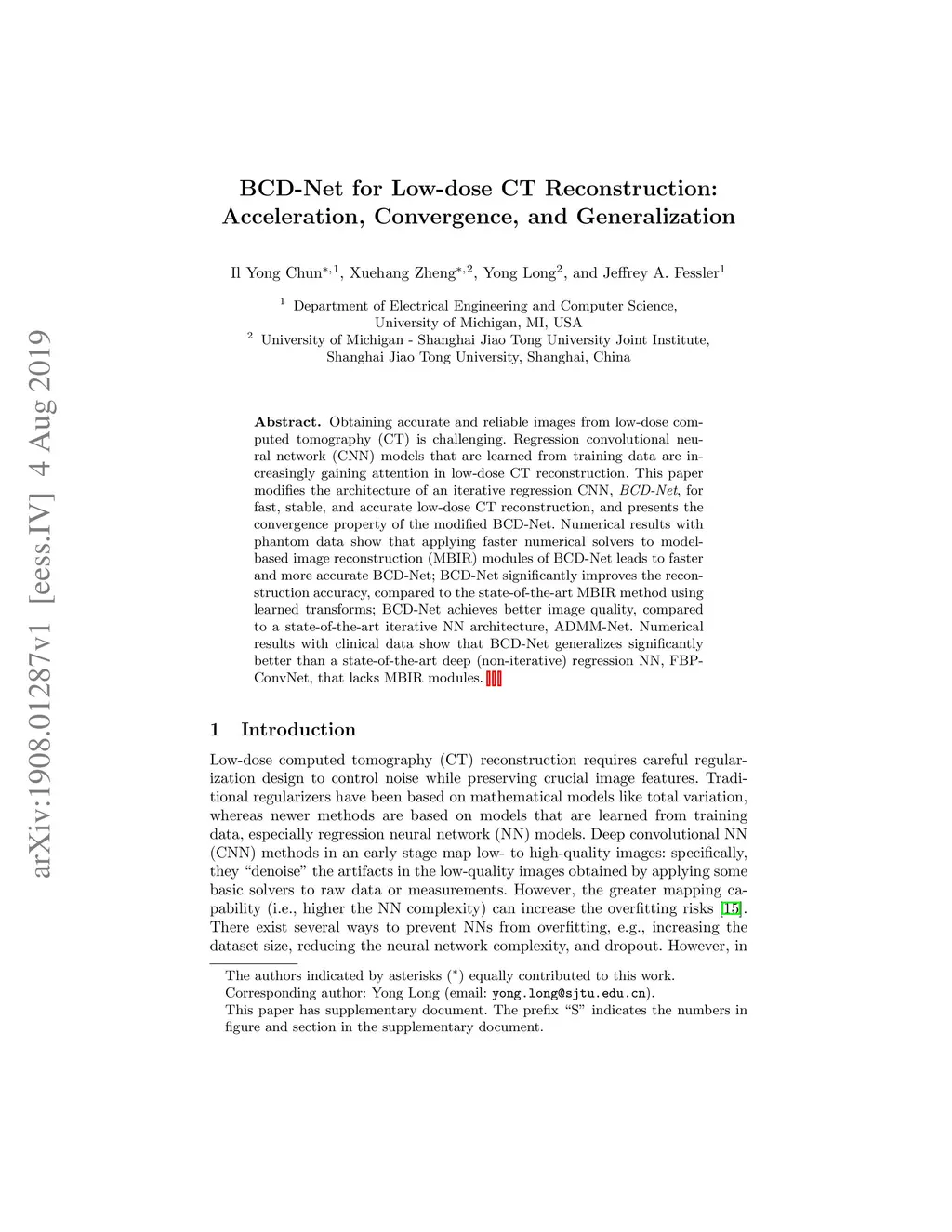 BCD-Net for Low-dose CT Reconstruction: Acceleration, Convergence, and