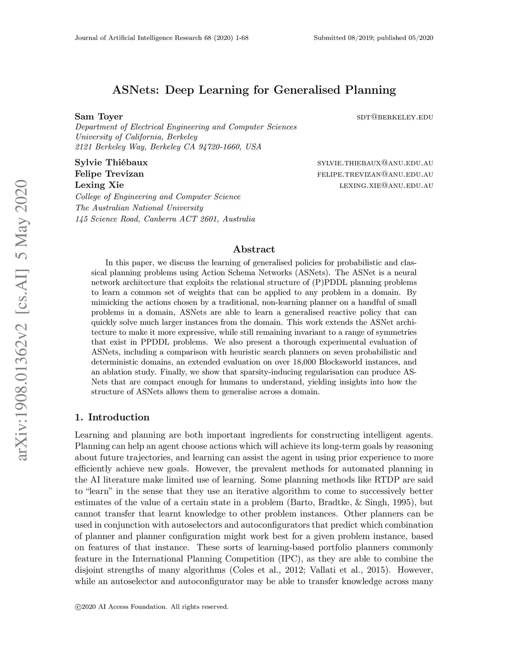 In this paper, we discuss the learning of generalised policies for probabilistic and classical planning problems using Action Schema Networks (ASNets). The ASNet is a neural network architecture that exploits the relational structure of (P)PDDL planning problems to learn a common set of weights that can be applied to any problem in a domain. By mimicking the actions chosen by a traditional, non-learning planner on a handful of small problems in a domain, ASNets are able to learn a generalised reactive policy that can quickly solve much larger instances from the domain. This work extends the ASNet architecture to make it more expressive, while still remaining invariant to a range of symmetries that exist in PPDDL problems. We also present a thorough experimental evaluation of ASNets, including a comparison with heuristic search planners on seven probabilistic and deterministic domains, an extended evaluation on over 18,000 Blocksworld instances, and an ablation study. Finally, we show that sparsity-inducing regularisation can produce ASNets that are compact enough for humans to understand, yielding insights into how the structure of ASNets allows them to generalise across a domain.