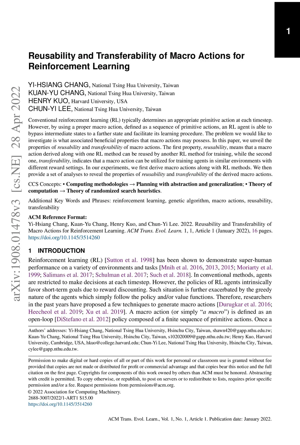Reusability and Transferability of Macro Actions for Reinforcement