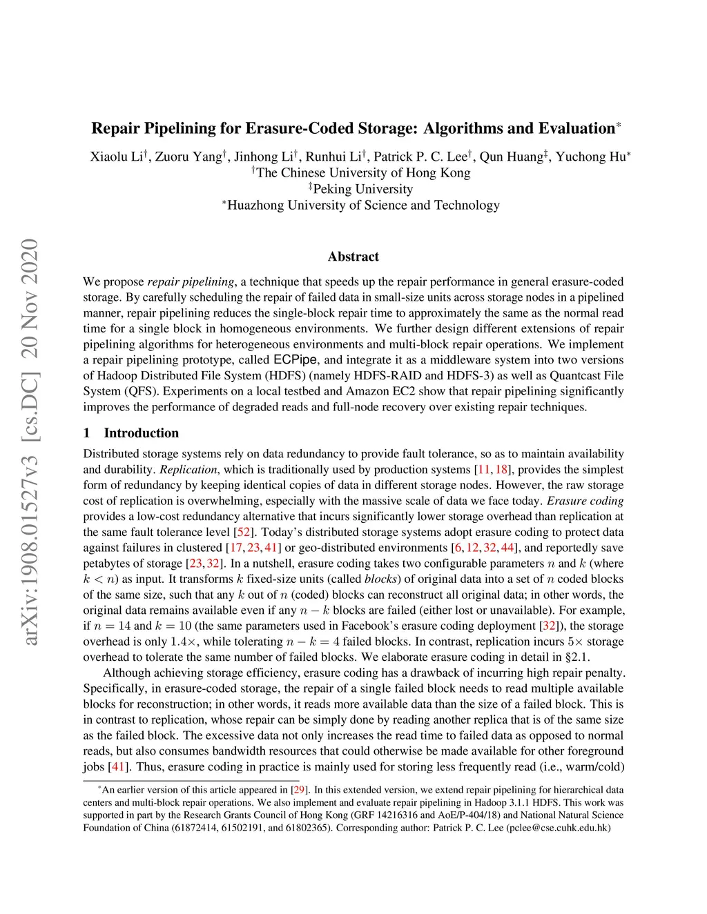 Repair Pipelining for Erasure-Coded Storage: Algorithms and Evaluation