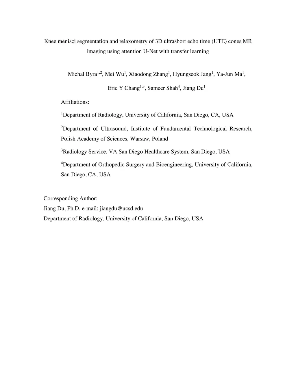 Knee menisci segmentation and relaxometry of 3D ultrashort echo time