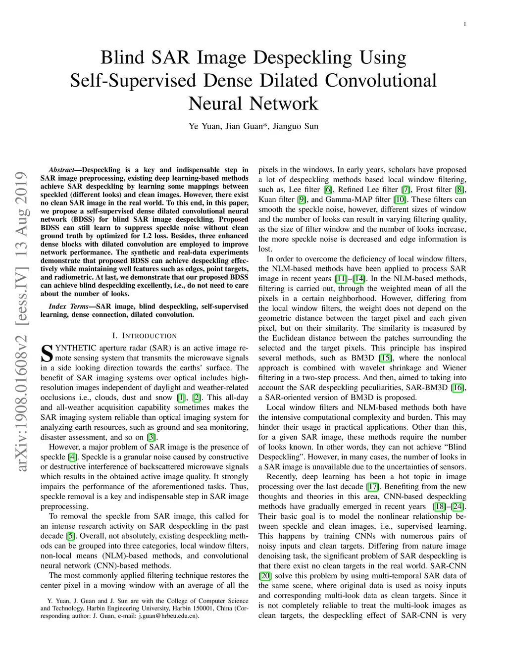 Blind SAR Image Despeckling Using Self-Supervised Dense Dilated