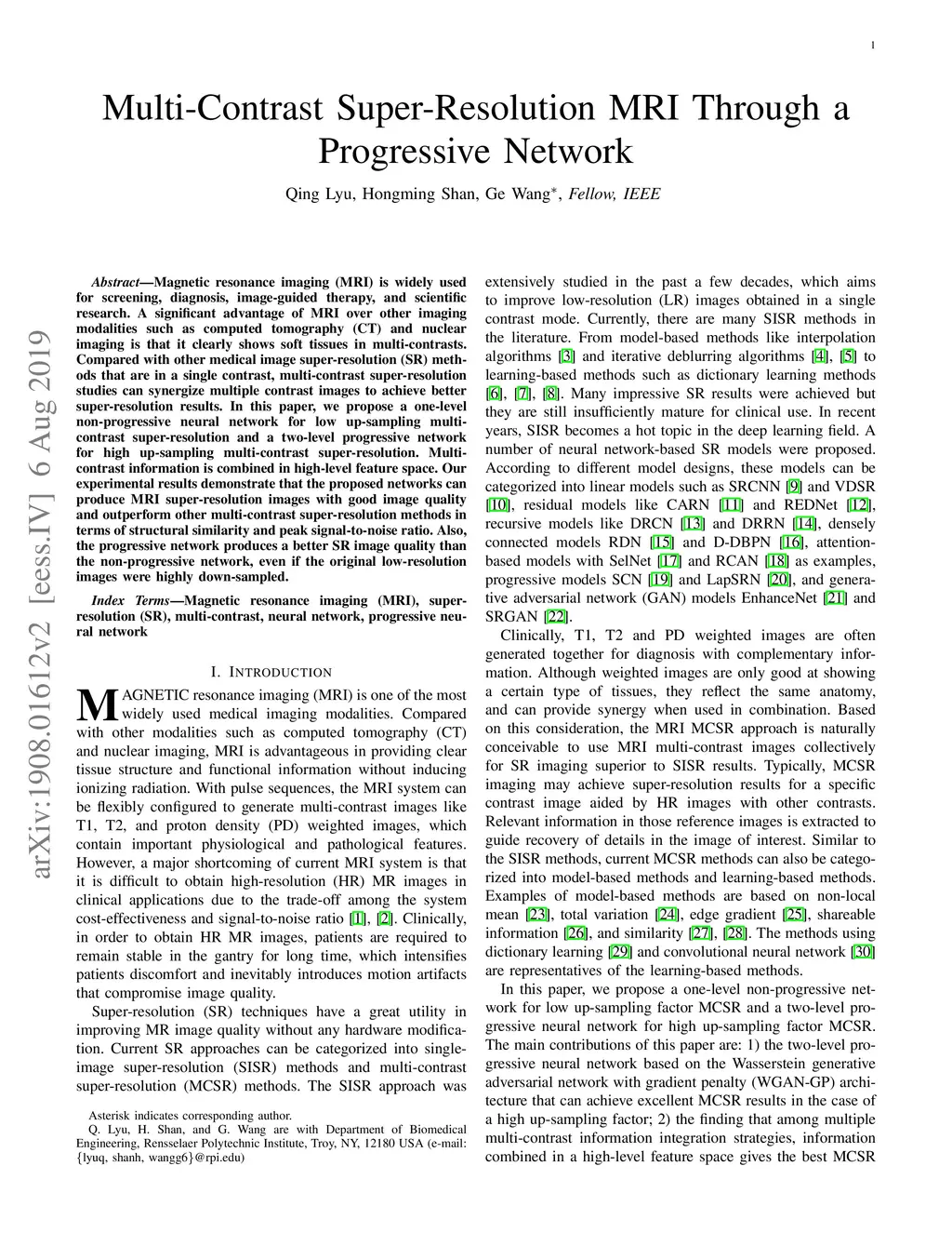 Multi-Contrast Super-Resolution MRI Through a Progressive Network