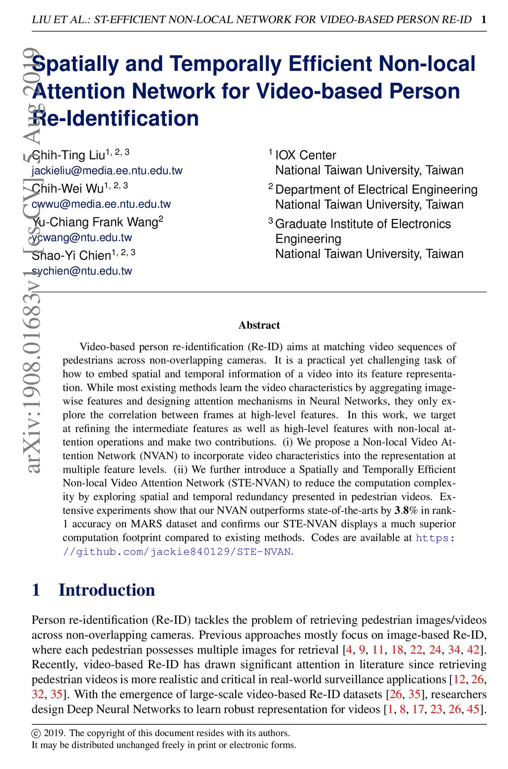 Video-based person re-identification (Re-ID) aims at matching video sequences of pedestrians across non-overlapping cameras. It is a practical yet challenging task of how to embed spatial and temporal information of a video into its feature representation. While most existing methods learn the video characteristics by aggregating image-wise features and designing attention mechanisms in Neural Networks, they only explore the correlation between frames at high-level features. In this work, we target at refining the intermediate features as well as high-level features with non-local attention operations and make two contributions. (i) We propose a Non-local Video Attention Network (NVAN) to incorporate video characteristics into the representation at multiple feature levels. (ii) We further introduce a Spatially and Temporally Efficient Non-local Video Attention Network (STE-NVAN) to reduce the computation complexity by exploring spatial and temporal redundancy presented in pedestrian videos. Extensive experiments show that our NVAN outperforms state-of-the-arts by 3.8% in rank-1 accuracy on MARS dataset and confirms our STE-NVAN displays a much superior computation footprint compared to existing methods.