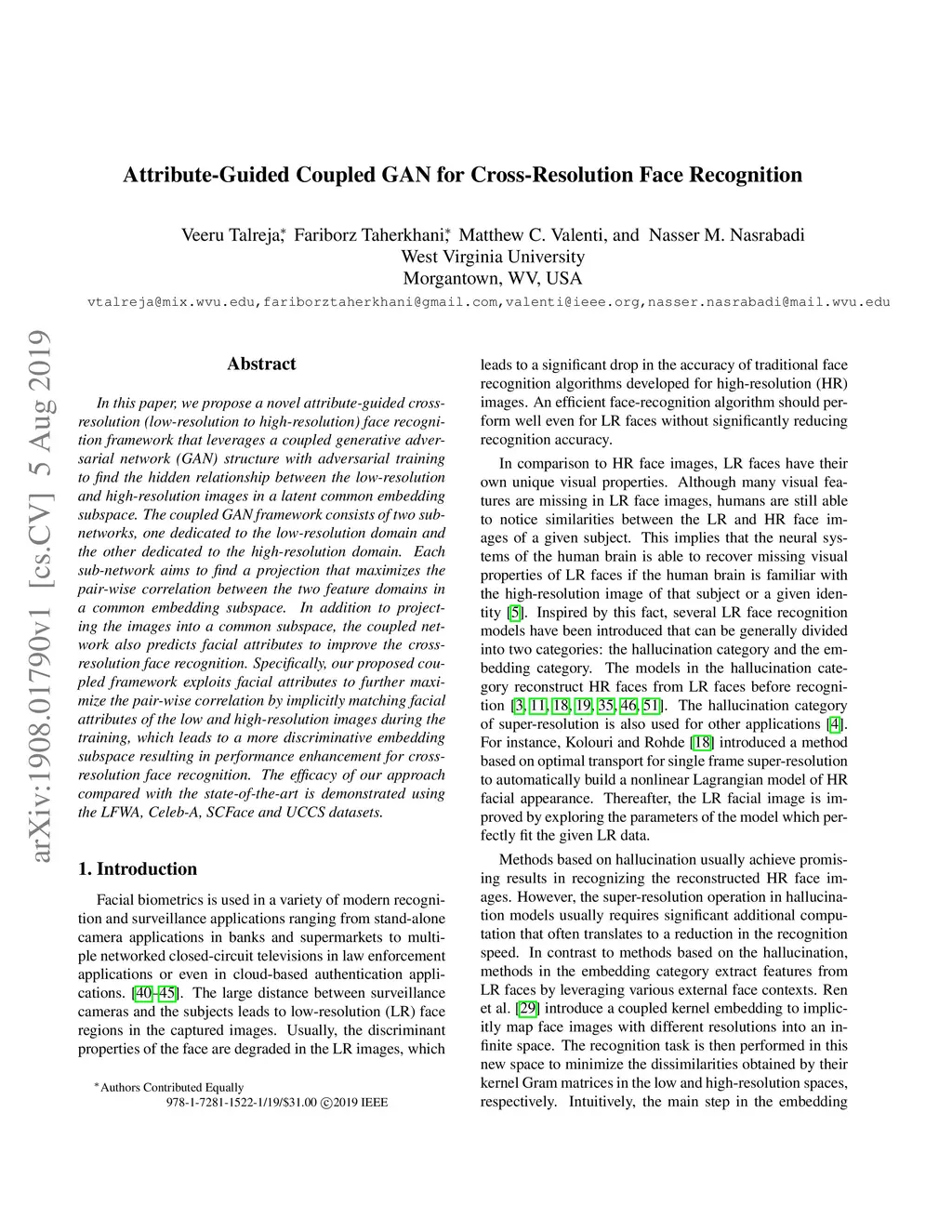 Attribute-Guided Coupled GAN for Cross-Resolution Face Recognition