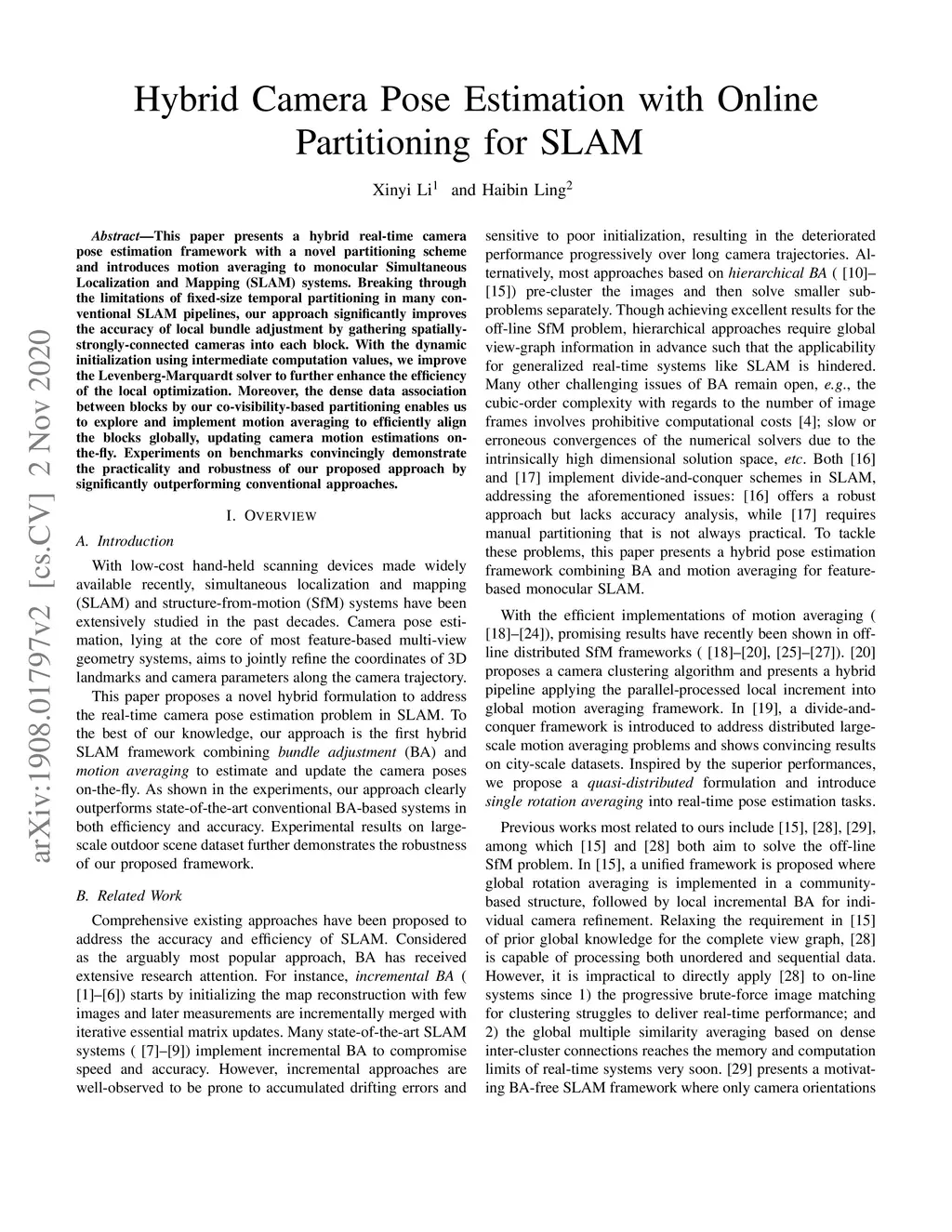 Hybrid Camera Pose Estimation with Online Partitioning for SLAM