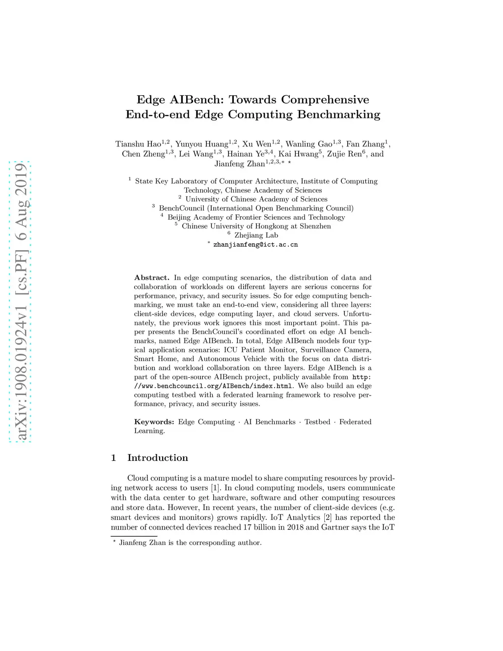 Edge AIBench: Towards Comprehensive End-to-end Edge Computing