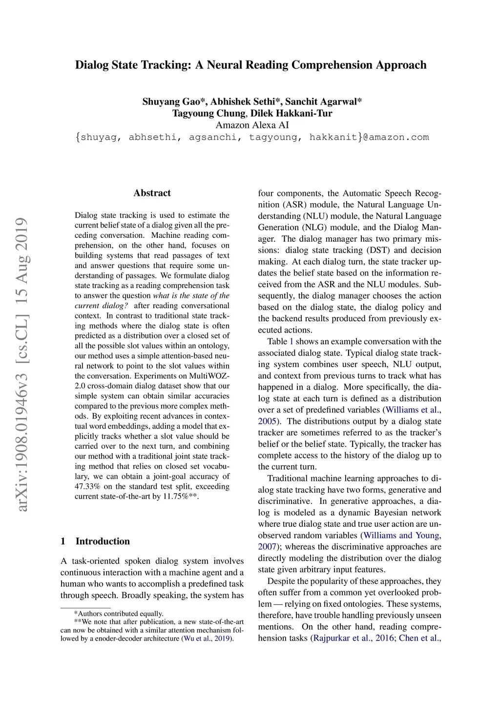 Dialog State Tracking: A Neural Reading Comprehension Approach