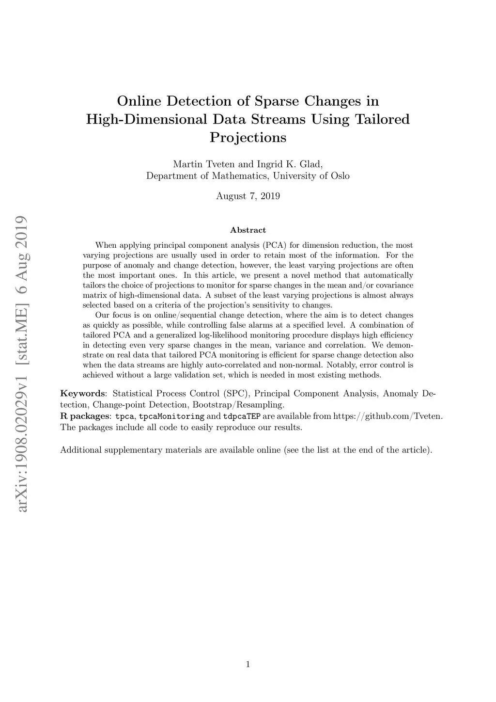 When applying principal component analysis (PCA) for dimension reduction, the most varying projections are usually used in order to retain most of the information. For the purpose of anomaly and change detection, however, the least varying projections are often the most important ones. In this article, we present a novel method that automatically tailors the choice of projections to monitor for sparse changes in the mean and/or covariance matrix of high-dimensional data. A subset of the least varying projections is almost always selected based on a criteria of the projection's sensitivity to changes. Our focus is on online/sequential change detection, where the aim is to detect changes as quickly as possible, while controlling false alarms at a specified level. A combination of tailored PCA and a generalized log-likelihood monitoring procedure displays high efficiency in detecting even very sparse changes in the mean, variance and correlation. We demonstrate on real data that tailored PCA monitoring is efficient for sparse change detection also when the data streams are highly auto-correlated and non-normal. Notably, error control is achieved without a large validation set, which is needed in most existing methods.