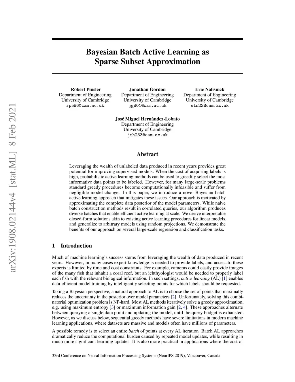 Neural Information Processing Systems (NeurIPS), 2019