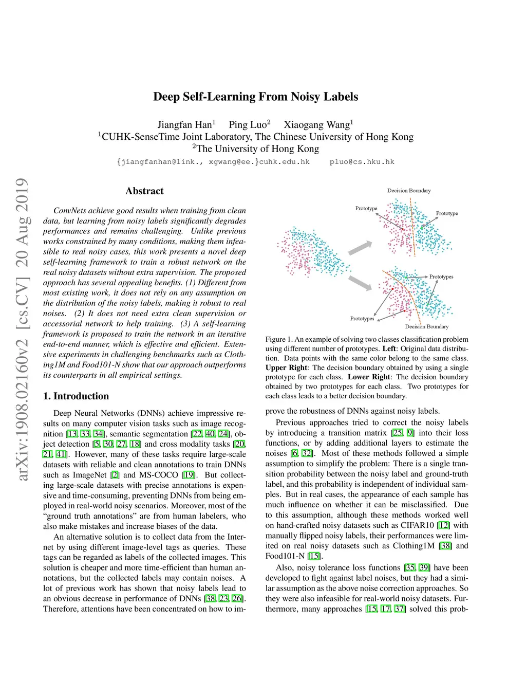 ConvNets achieve good results when training from clean data, but learning from noisy labels significantly degrades performances and remains challenging. Unlike previous works constrained by many conditions, making them infeasible to real noisy cases, this work presents a novel deep self-learning framework to train a robust network on the real noisy datasets without extra supervision. The proposed approach has several appealing benefits. (1) Different from most existing work, it does not rely on any assumption on the distribution of the noisy labels, making it robust to real noises. (2) It does not need extra clean supervision or accessorial network to help training. (3) A self-learning framework is proposed to train the network in an iterative end-to-end manner, which is effective and efficient. Extensive experiments in challenging benchmarks such as Clothing1M and Food101-N show that our approach outperforms its counterparts in all empirical settings.