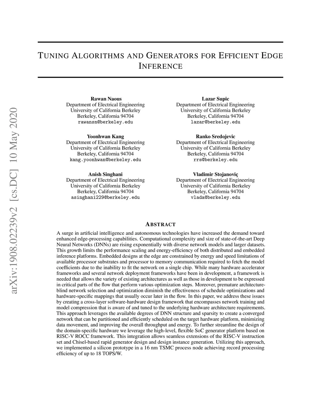 Tuning Algorithms and Generators for Efficient Edge Inference