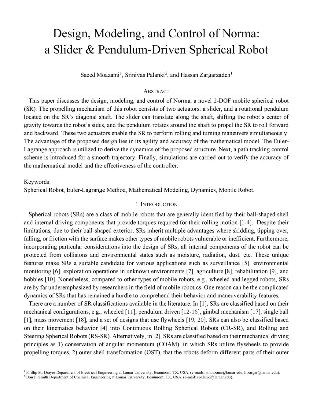 Design, Modeling, and Control of Norma: a Slider & Pendulum-Driven