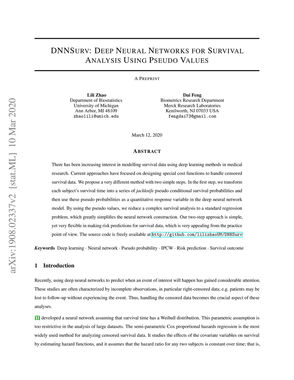 DNNSurv: Deep Neural Networks for Survival Analysis Using Pseudo Values