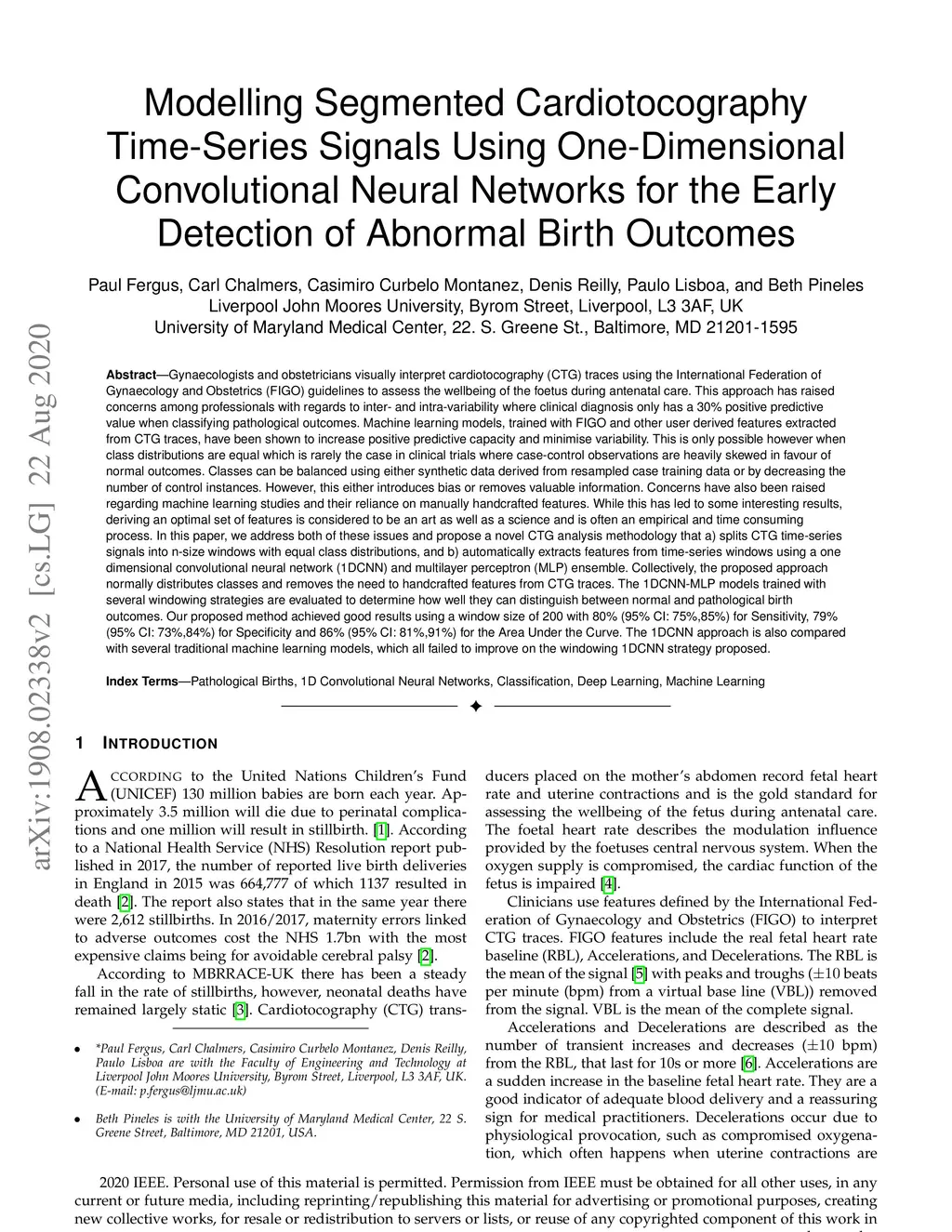 Modelling Segmented Cardiotocography Time-Series Signals Using
