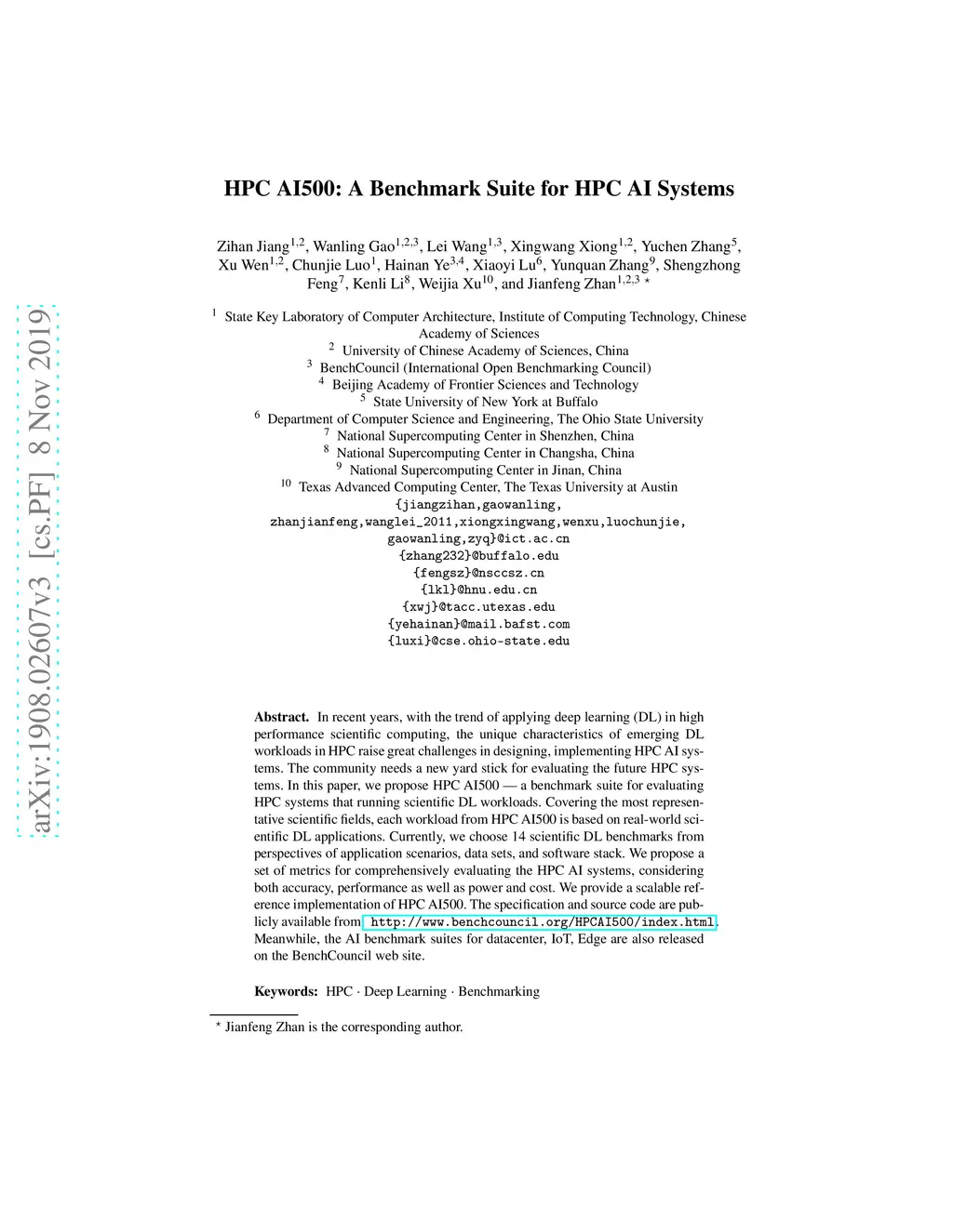 HPC AI500: A Benchmark Suite for HPC AI Systems