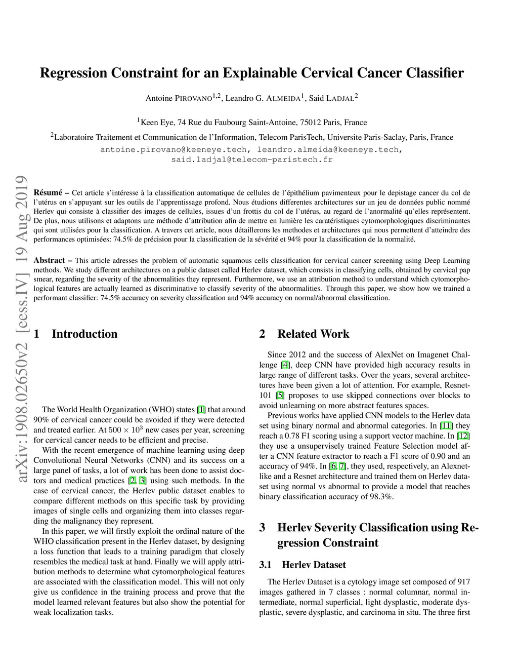 Regression Constraint for an Explainable Cervical Cancer Classifier