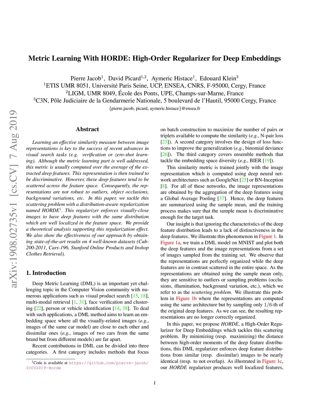 Metric Learning With HORDE: High-Order Regularizer for Deep Embeddings