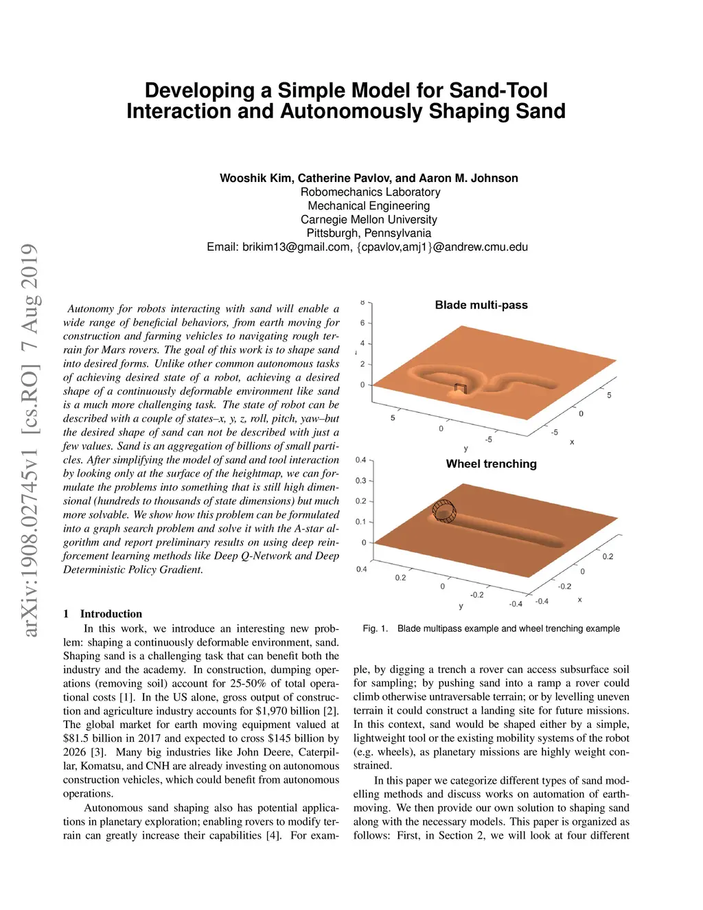 Autonomy for robots interacting with sand will enable a wide range of beneficial behaviors, from earth moving for construction and farming vehicles to navigating rough terrain for Mars rovers. The goal of this work is to shape sand into desired forms. Unlike other common autonomous tasks of achieving desired state of a robot, achieving a desired shape of a continuously deformable environment like sand is a much more challenging task. The state of robot can be described with a couple of states-x, y, z, roll, pitch, yaw-but the desired shape of sand can not be described with just a few values. Sand is an aggregation of billions of small particles. After simplifying the model of sand and tool interaction by looking only at the surface of the heightmap, we can formulate the problems into something that is still high dimensional (hundreds to thousands of state dimensions) but much more solvable. We show how this problem can be formulated into a graph search problem and solve it with the A-star algorithm and report preliminary results on using deep reinforcement learning methods like Deep Q-Network and Deep Deterministic Policy Gradient.