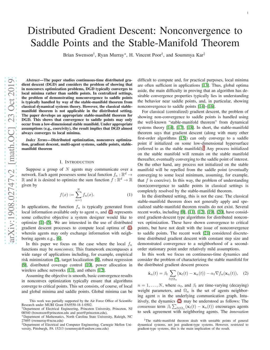 Distributed Gradient Descent: Nonconvergence to Saddle Points and the