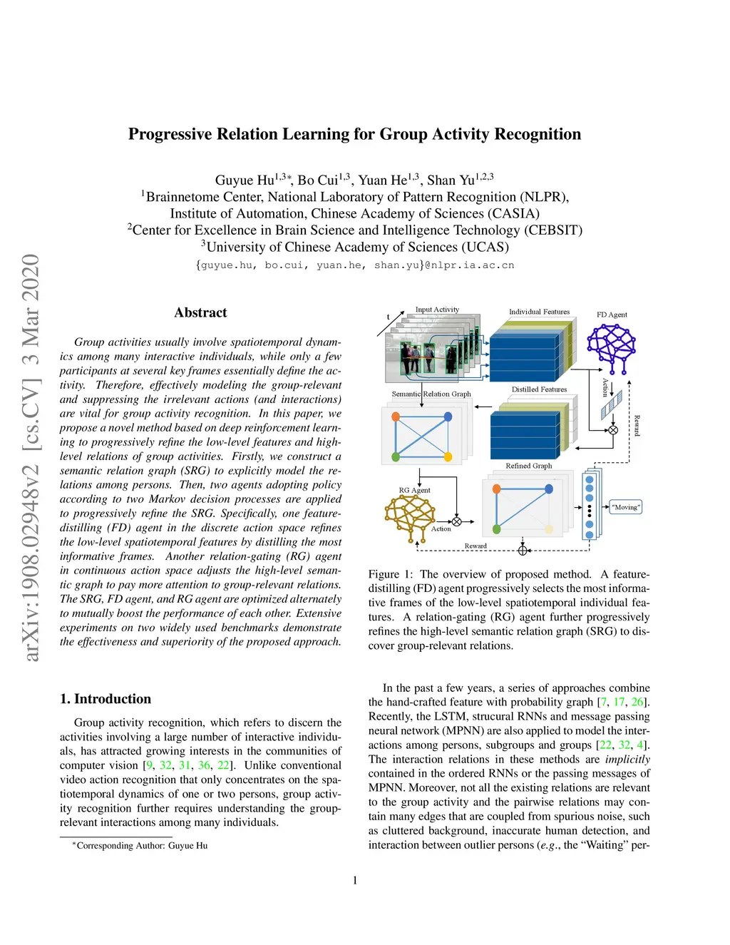 Group activities usually involve spatiotemporal dynamics among many interactive individuals, while only a few participants at several key frames essentially define the activity. Therefore, effectively modeling the group-relevant and suppressing the irrelevant actions (and interactions) are vital for group activity recognition. In this paper, we propose a novel method based on deep reinforcement learning to progressively refine the low-level features and high-level relations of group activities. Firstly, we construct a semantic relation graph (SRG) to explicitly model the relations among persons. Then, two agents adopting policy according to two Markov decision processes are applied to progressively refine the SRG. Specifically, one feature-distilling (FD) agent in the discrete action space refines the low-level spatio-temporal features by distilling the most informative frames. Another relation-gating (RG) agent in continuous action space adjusts the high-level semantic graph to pay more attention to group-relevant relations. The SRG, FD agent, and RG agent are optimized alternately to mutually boost the performance of each other. Extensive experiments on two widely used benchmarks demonstrate the effectiveness and superiority of the proposed approach.
