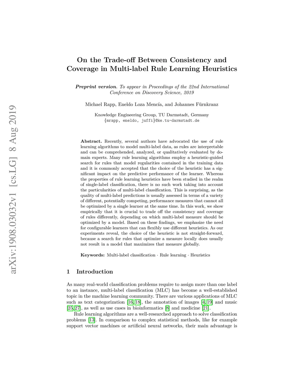 On the Trade-off Between Consistency and Coverage in Multi-label Rule