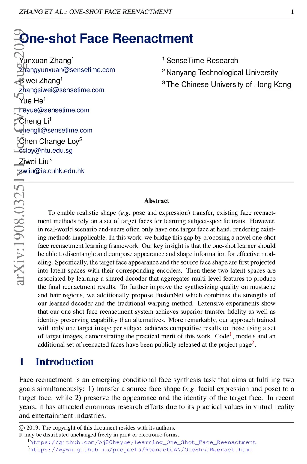 One-shot Face Reenactment