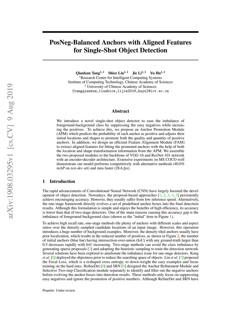 PosNeg-Balanced Anchors with Aligned Features for Single-Shot Object