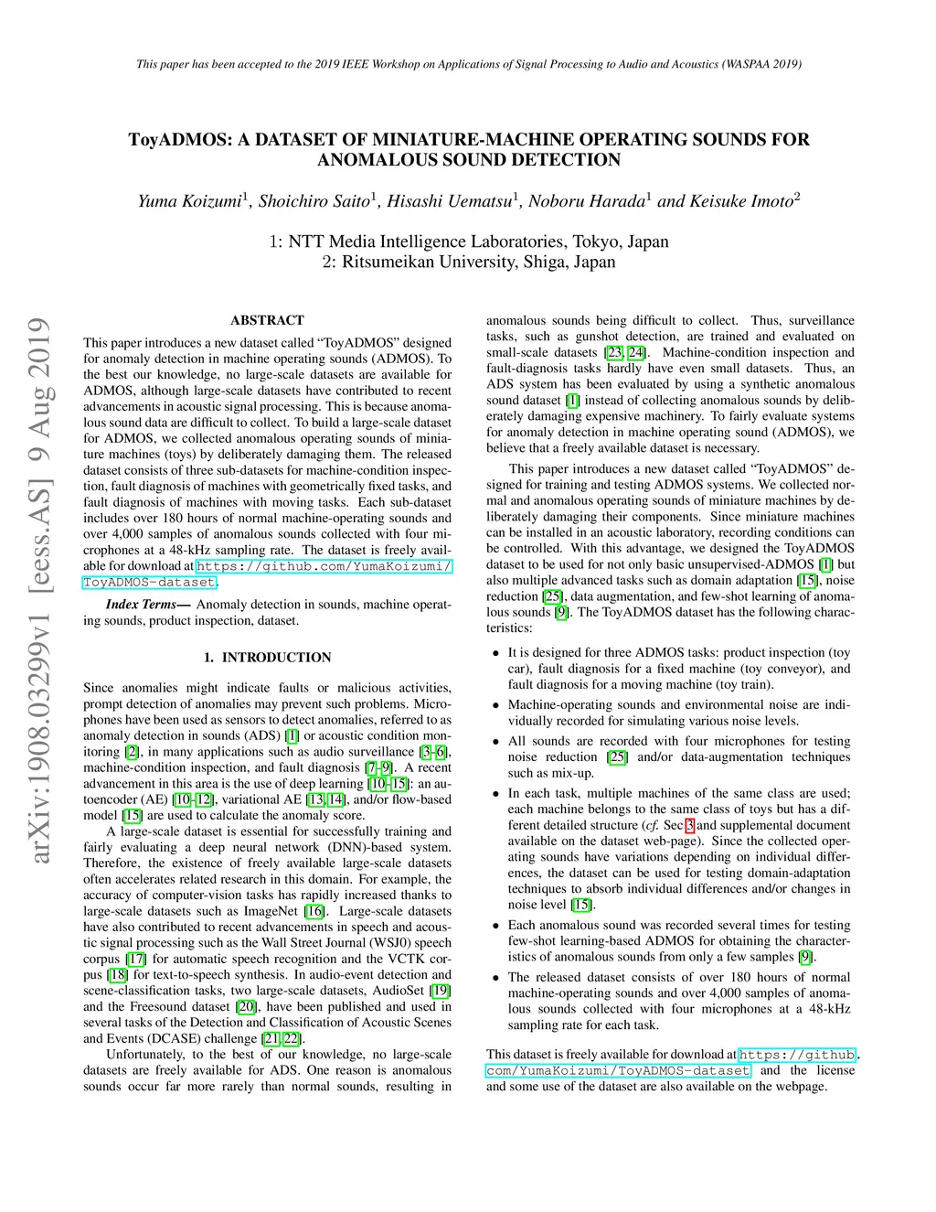 ToyADMOS: A Dataset of Miniature-Machine Operating Sounds for Anomalous