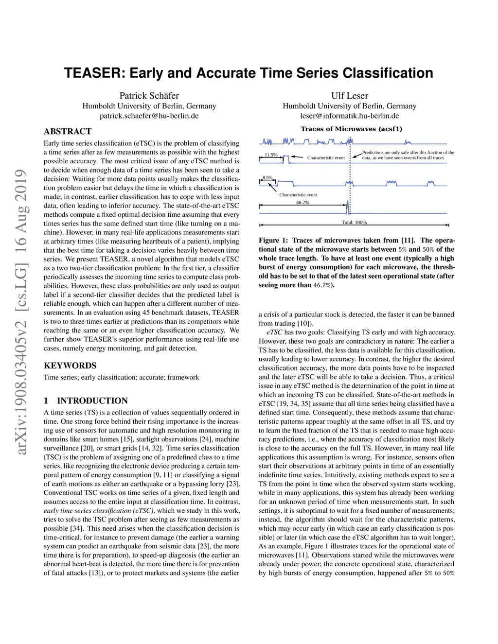 Early time series classification (eTSC) is the problem of classifying a time series after as few measurements as possible with the highest possible accuracy. The most critical issue of any eTSC method is to decide when enough data of a time series has been seen to take a decision: Waiting for more data points usually makes the classification problem easier but delays the time in which a classification is made; in contrast, earlier classification has to cope with less input data, often leading to inferior accuracy. The state-of-the-art eTSC methods compute a fixed optimal decision time assuming that every times series has the same defined start time (like turning on a machine). However, in many real-life applications measurements start at arbitrary times (like measuring heartbeats of a patient), implying that the best time for taking a decision varies heavily between time series. We present TEASER, a novel algorithm that models eTSC as a two two-tier classification problem: In the first tier, a classifier periodically assesses the incoming time series to compute class probabilities. However, these class probabilities are only used as output label if a second-tier classifier decides that the predicted label is reliable enough, which can happen after a different number of measurements. In an evaluation using 45 benchmark datasets, TEASER is two to three times earlier at predictions than its competitors while reaching the same or an even higher classification accuracy. We further show TEASER's superior performance using real-life use cases, namely energy monitoring, and gait detection.