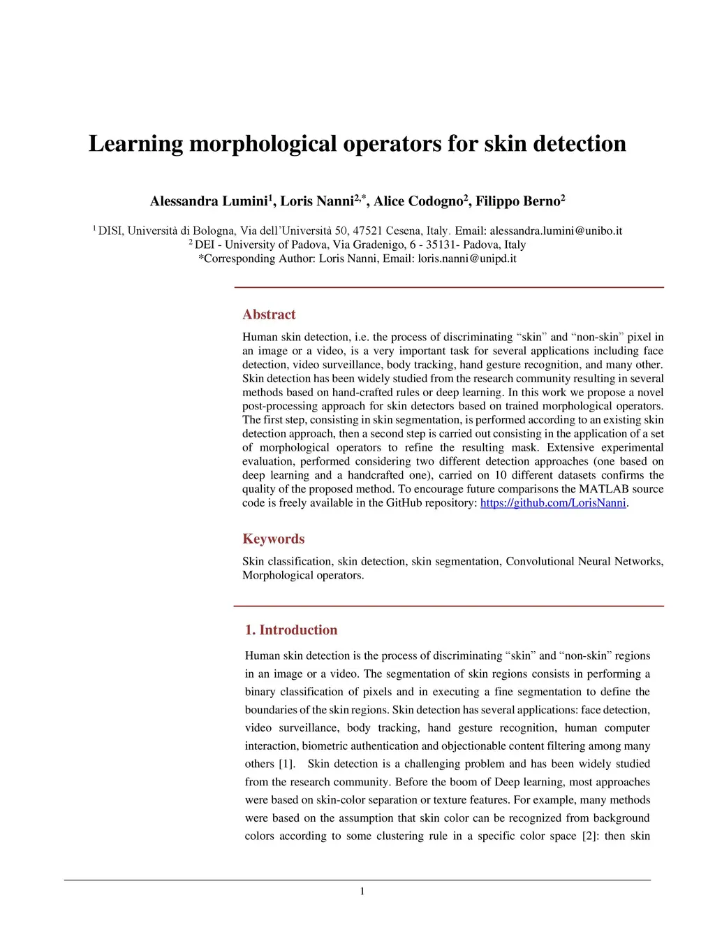 Learning morphological operators for skin detection