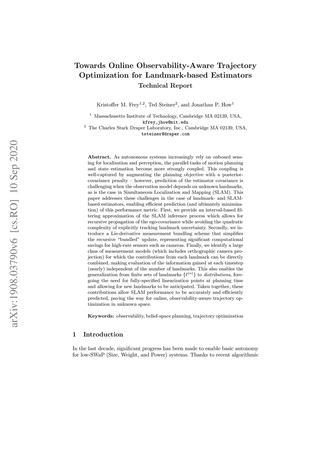 NOTE: The authors have identified fundamental errors in the article. We are working on a corrected version, so check back soon. As autonomous systems rely increasingly on onboard sensing for localization and perception, the parallel tasks of motion planning and state estimation become increasingly coupled. This coupling is well-captured by augmenting the planning objective with a posterior covariance penalty -- however, online evaluation and optimization can be challenging, particularly for observation models with latent environmental dependencies (e.g., opportunistic landmarks). This paper addresses a number of fundamental challenges in efficient prediction and minimization of the posterior covariance particular to landmark- and SLAM-based estimators. First, we provide a measurement bundling approximation that enables high-rate sensors such as cameras to be approximated with fewer, low-rate updates. This also allows for landmark marginalization, for which we provide a novel recipe for computing the gradients necessary for optimization. Finally, we identify a class of measurement models for which the contributions from each landmark can be directly combined, making evaluation of the information gained at each timestep (nearly) independent of the number of landmarks. This opens the door for generalization to landmark distributions, foregoing the need for fully-specified linearization points. Taken together, these contributions allow SLAM estimators to be accurately and efficiently approximated, paving the way for online, observability-aware trajectory optimization.