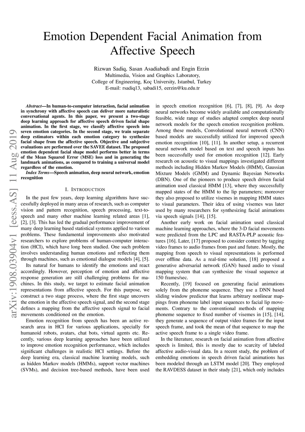 In human-to-computer interaction, facial animation in synchrony with affective speech can deliver more naturalistic conversational agents. In this paper, we present a two-stage deep learning approach for affective speech driven facial shape animation. In the first stage, we classify affective speech into seven emotion categories. In the second stage, we train separate deep estimators within each emotion category to synthesize facial shape from the affective speech. Objective and subjective evaluations are performed over the SAVEE dataset. The proposed emotion dependent facial shape model performs better in terms of the Mean Squared Error (MSE) loss and in generating the landmark animations, as compared to training a universal model regardless of the emotion.