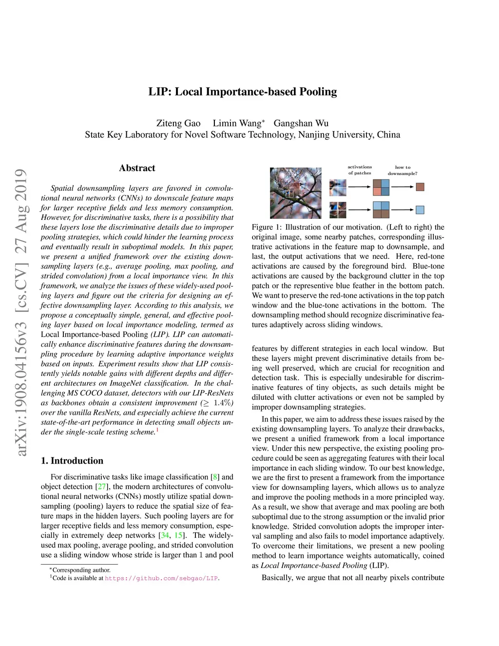 Spatial downsampling layers are favored in convolutional neural networks (CNNs) to downscale feature maps for larger receptive fields and less memory consumption. However, for discriminative tasks, there is a possibility that these layers lose the discriminative details due to improper pooling strategies, which could hinder the learning process and eventually result in suboptimal models. In this paper, we present a unified framework over the existing downsampling layers (e.g., average pooling, max pooling, and strided convolution) from a local importance view. In this framework, we analyze the issues of these widely-used pooling layers and figure out the criteria for designing an effective downsampling layer. According to this analysis, we propose a conceptually simple, general, and effective pooling layer based on local importance modeling, termed as {\em Local Importance-based Pooling} (LIP). LIP can automatically enhance discriminative features during the downsampling procedure by learning adaptive importance weights based on inputs. Experiment results show that LIP consistently yields notable gains with different depths and different architectures on ImageNet classification. In the challenging MS COCO dataset, detectors with our LIP-ResNets as backbones obtain a consistent improvement () over the vanilla ResNets, and especially achieve the current state-of-the-art performance in detecting small objects under the single-scale testing scheme.
