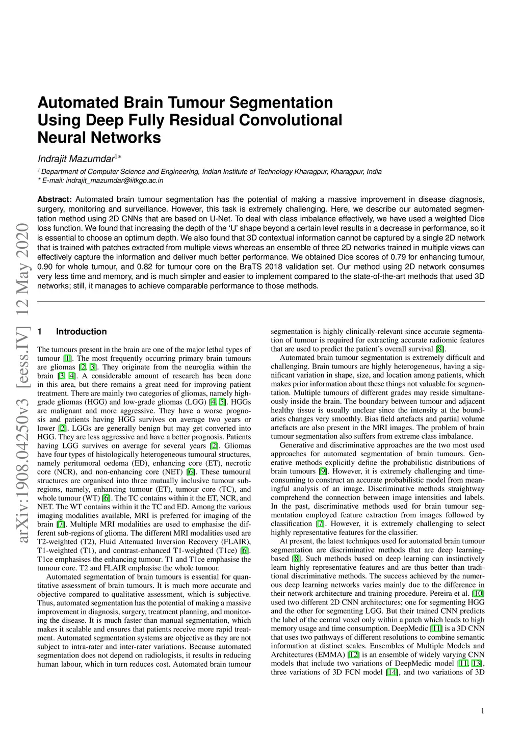 Automated Brain Tumour Segmentation Using Deep Fully Residual