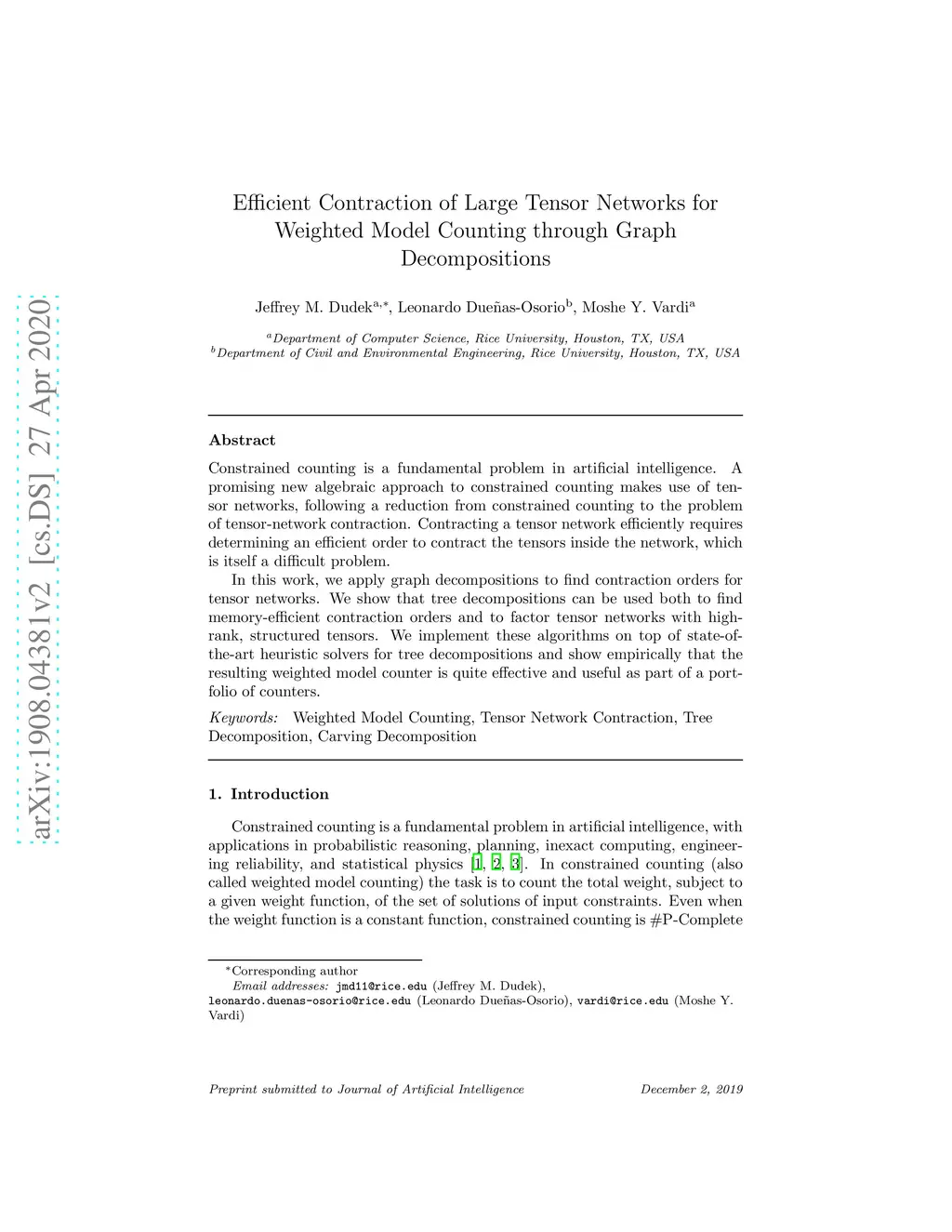 Efficient Contraction of Large Tensor Networks for Weighted Model