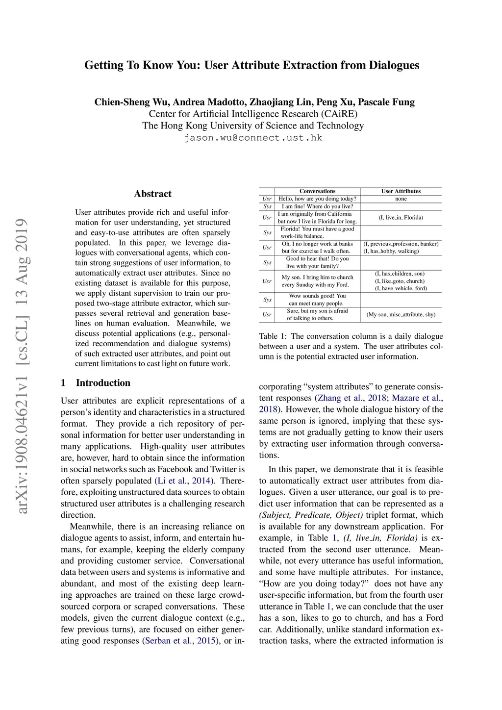 Getting To Know You: User Attribute Extraction from Dialogues