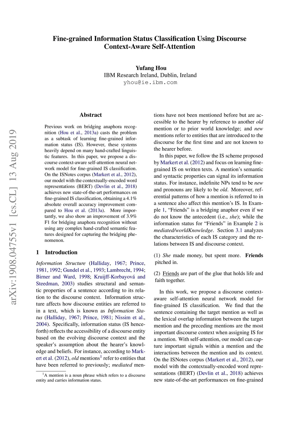 Fine-grained Information Status Classification Using Discourse