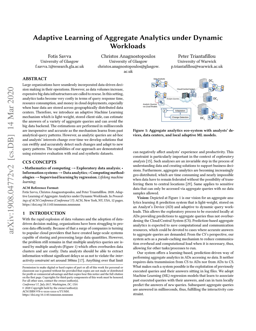 Adaptive Learning of Aggregate Analytics under Dynamic Workloads