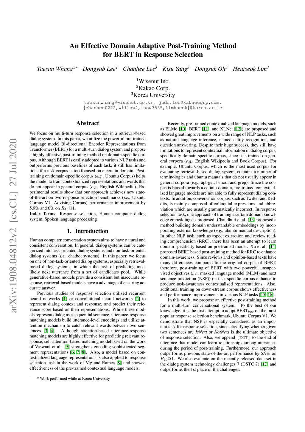 An Effective Domain Adaptive Post-Training Method for BERT in Response
