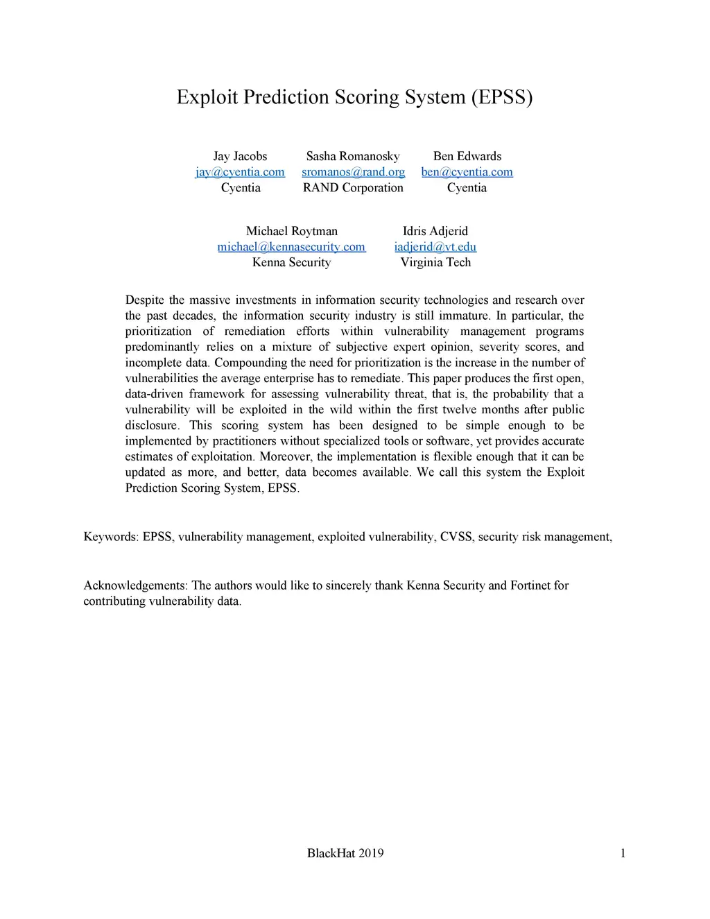 Despite the massive investments in information security technologies and research over the past decades, the information security industry is still immature. In particular, the prioritization of remediation efforts within vulnerability management programs predominantly relies on a mixture of subjective expert opinion, severity scores, and incomplete data. Compounding the need for prioritization is the increase in the number of vulnerabilities the average enterprise has to remediate. This paper produces the first open, data-driven framework for assessing vulnerability threat, that is, the probability that a vulnerability will be exploited in the wild within the first twelve months after public disclosure. This scoring system has been designed to be simple enough to be implemented by practitioners without specialized tools or software, yet provides accurate estimates of exploitation. Moreover, the implementation is flexible enough that it can be updated as more, and better, data becomes available. We call this system the Exploit Prediction Scoring System, EPSS.
