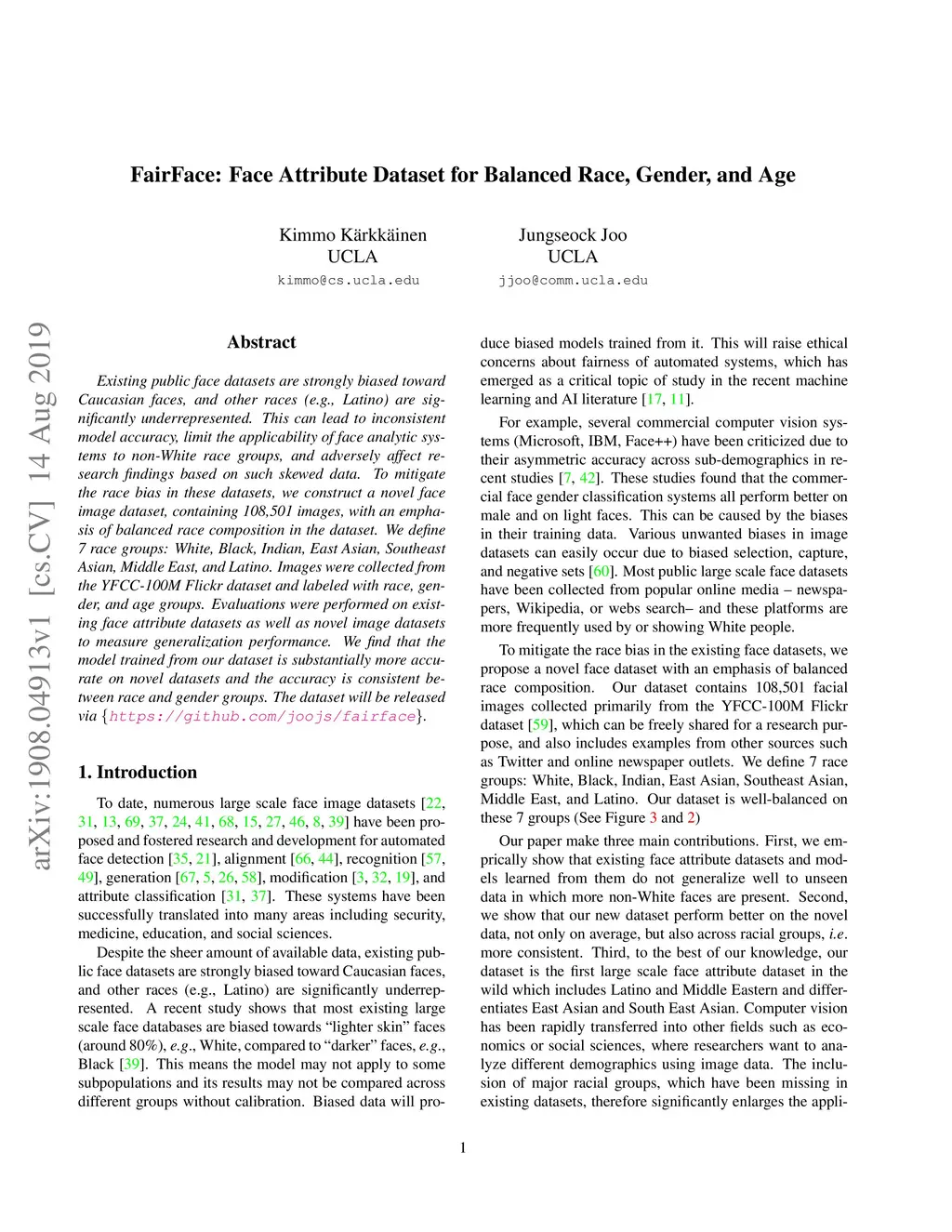 FairFace: Face Attribute Dataset for Balanced Race, Gender, and Age