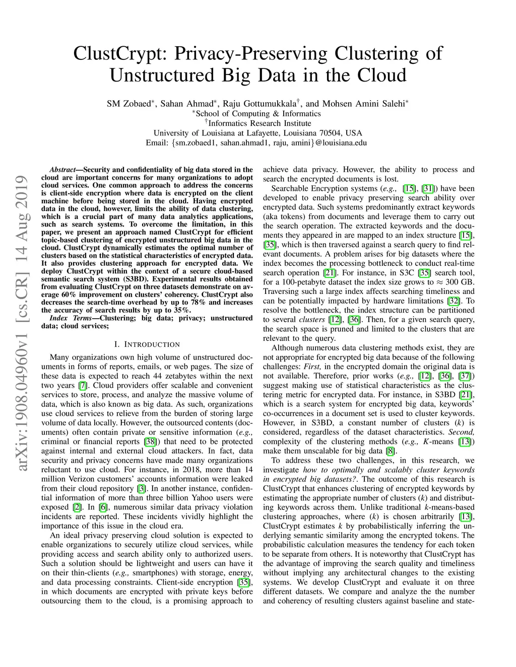 ClustCrypt: Privacy-Preserving Clustering of Unstructured Big Data in
