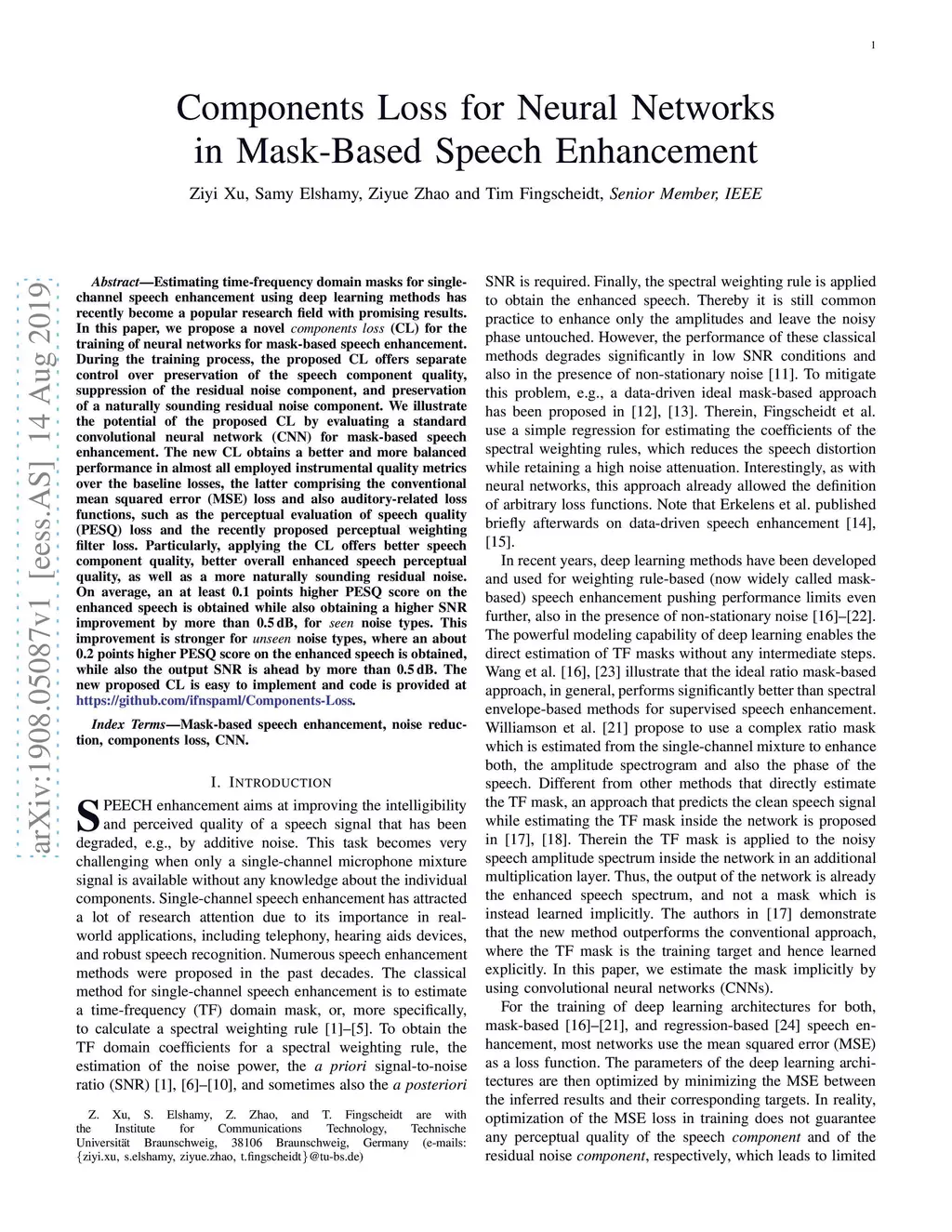 Components Loss for Neural Networks in Mask-Based Speech Enhancement