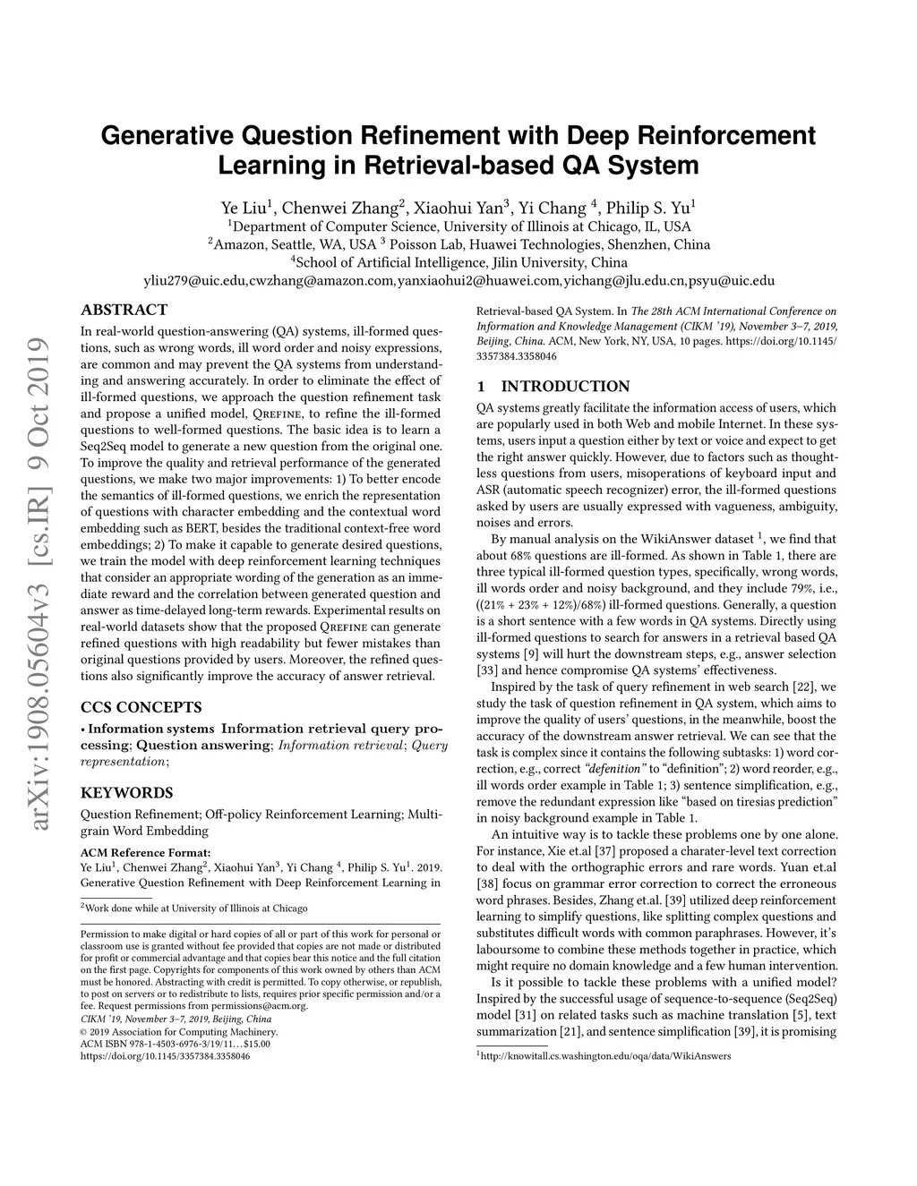 Generative Question Refinement with Deep Reinforcement Learning in