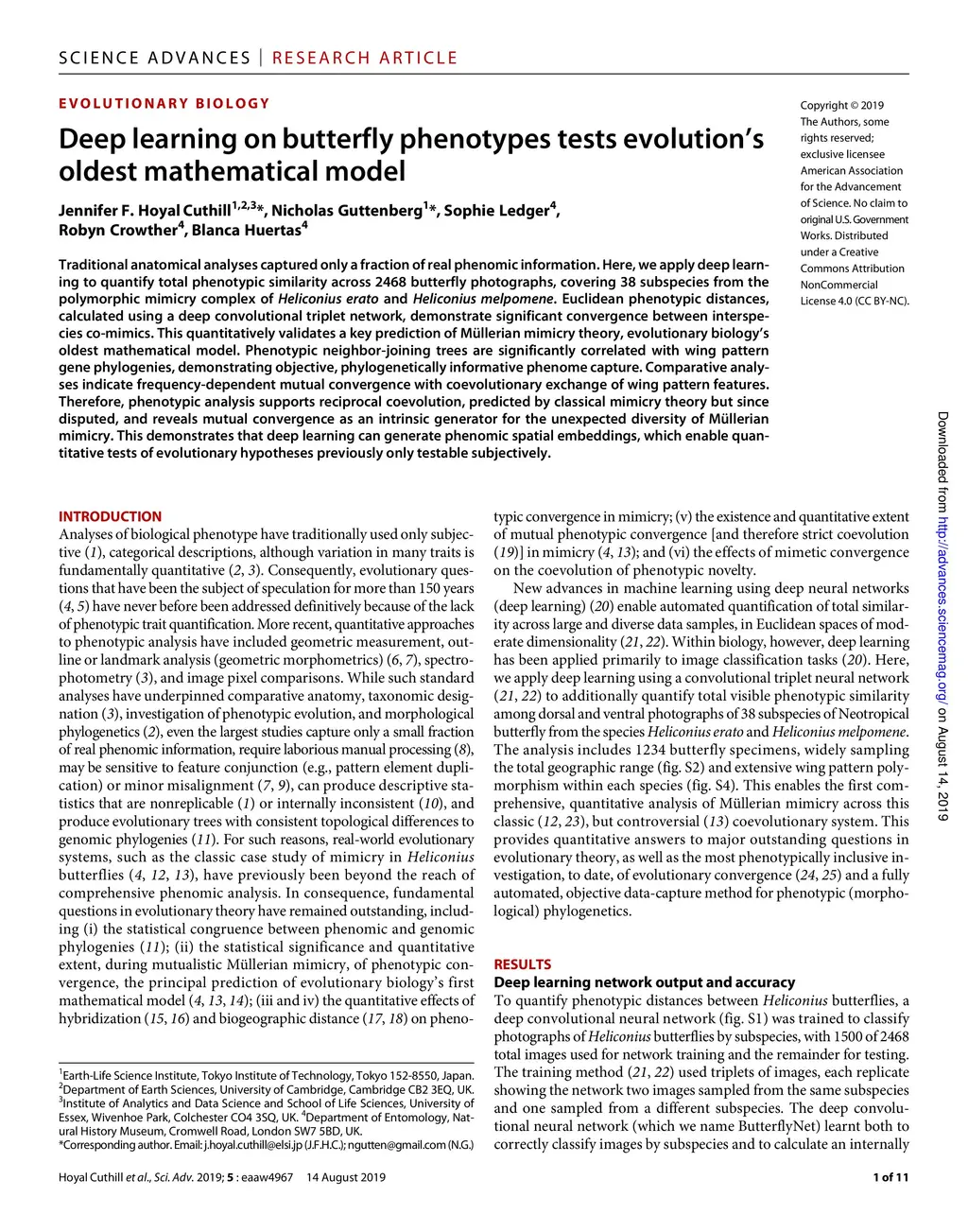 Deep learning on butterfly phenotypes tests evolution's oldest