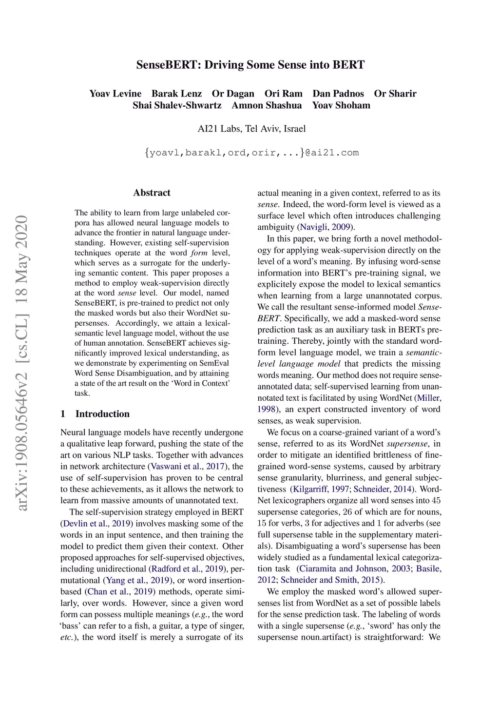 SenseBERT: Driving Some Sense into BERT